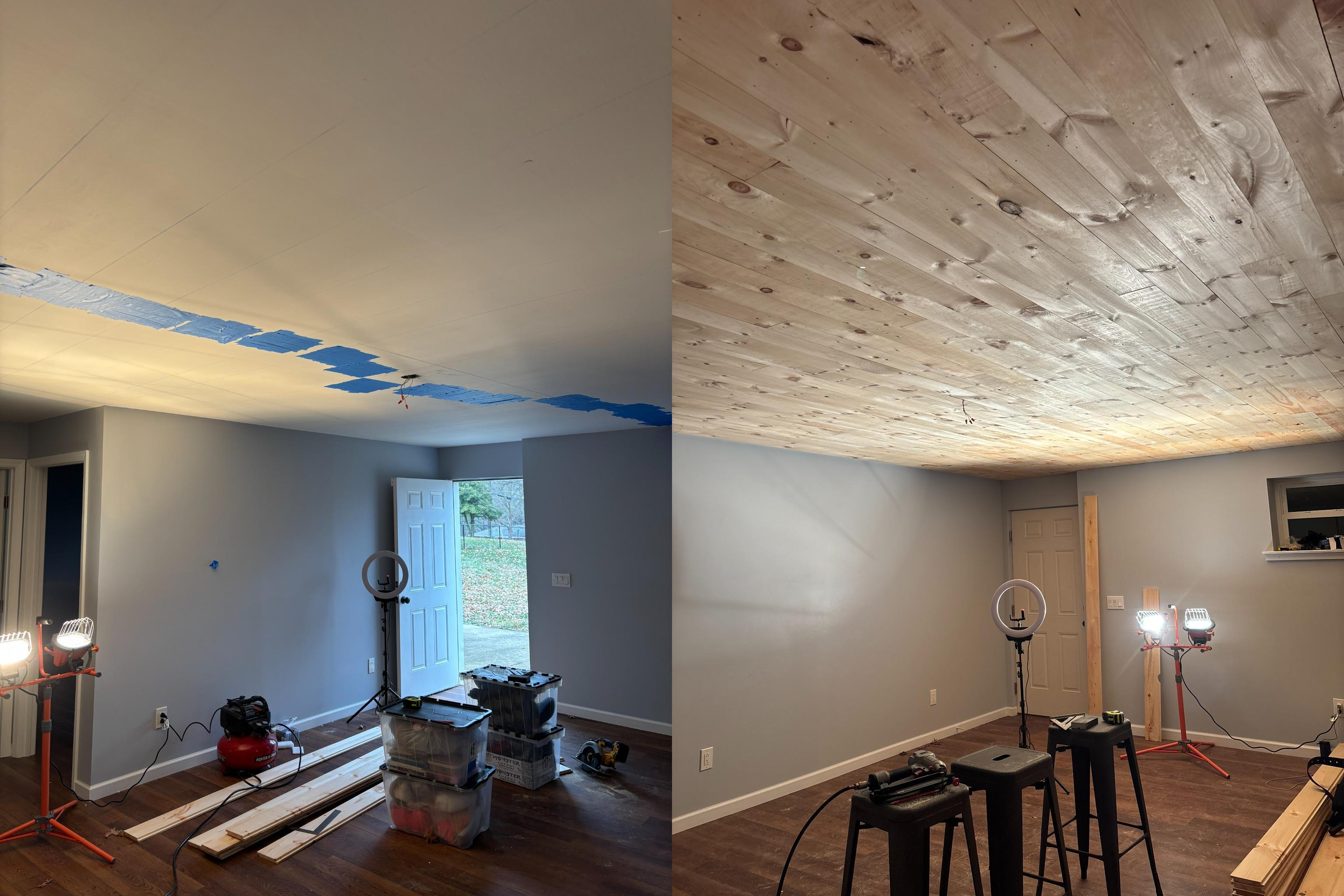 Carpet Removal IncludedShiplap Ceiling/Wall Installation